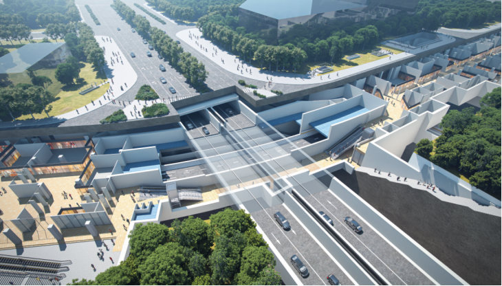 构建高效运行的地下车行环路。地下二层车行环路与跨江通道及地面路网衔接,能承担核心区30%—40%的到发交通,缓解地面压力。